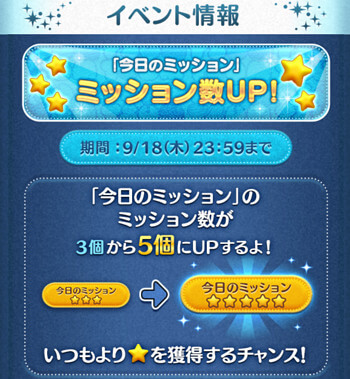 ツムツム 2025年9月今日のミッション数アップキャンペーン!1日最大5個のミッションスターをゲットしよう