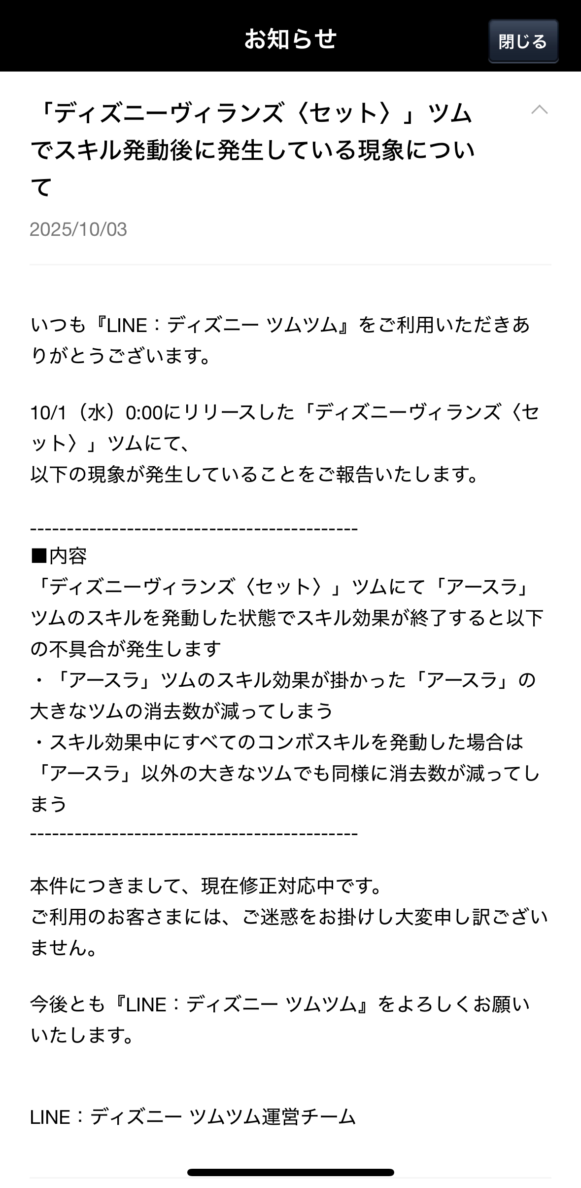 | 2025年10月1日0:00~10月4日10:59 | お知らせ記事 |