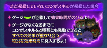 どのツムの効果が出るかランダムなので、ゲージが消える前に1回でも多くコンボスキルを使う必要があります。