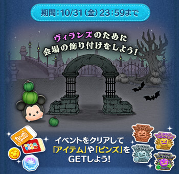 LINEディズニー ツムツム(Tsum Tsum)の2025年10月イベント「ヴィランズハロウィーン」のクリア報酬、カードの完全クリア報酬一覧完全まとめです!