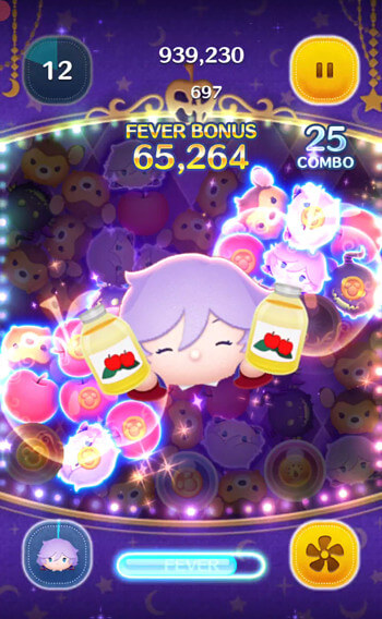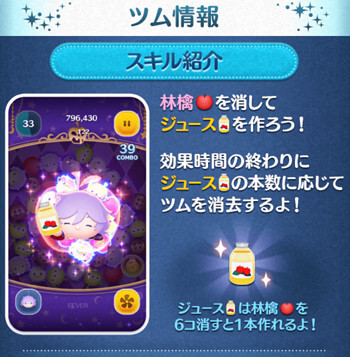 林檎を消してジュースを作ると、スキルの最後に作った数に応じてツムを消します。