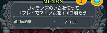 ヴィランズのツムを使って1プレイでマイツムを110個消そう!のミッション概要