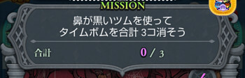 このミッションは、鼻が黒いツムでタイムボムを合計3個消すとクリアになります。