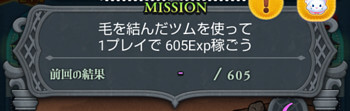 このミッションは、毛を結んだツムを使って605Exp稼ぐとクリアになります。