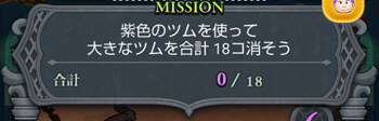 このミッションは、紫色のツムで大ツムを合計18個消すとクリアになります。