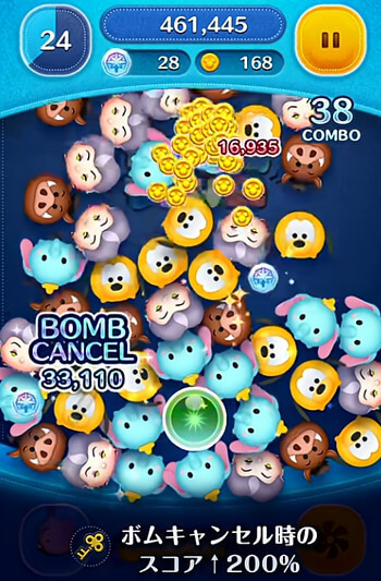 ツムが消えるまでに時間がかかるため、ボムキャンセルを活用していきたいところ。