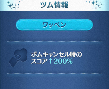 ワッペン効果として、「ボムキャンセル時のスコア↑200%」という効果があります。