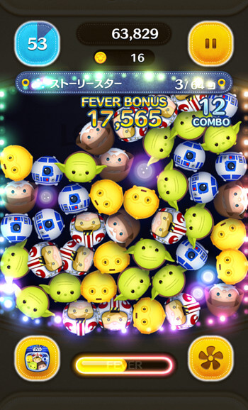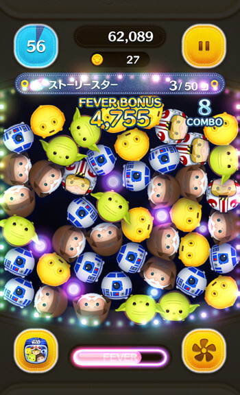 パッチは、画面をタップするとそのライン状にツムを1個1個消していくので、1回のスキルで30~50コンボ近く稼ぐことができます。