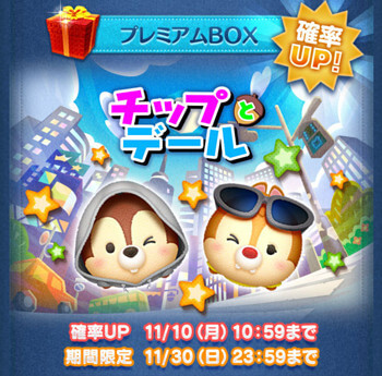 新ツム第2弾は、チップとデールシリーズより2体が追加され確率アップとなります。