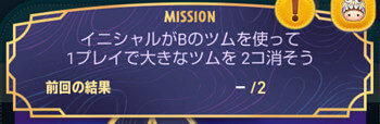 イニシャルがBのツムを使って1プレイで大きなツムを2個消そう!のミッション概要