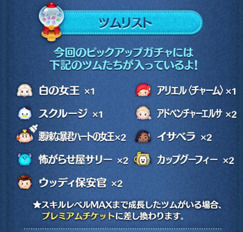 今回のピックアップガチャは初復活のツムはいません。