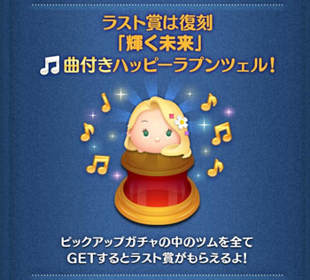 今回のピックアップガチャで注目となるのはラスト賞の曲付きハッピーラプンツェルです。