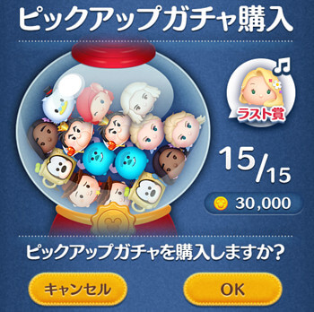 今回のピックアップガチャも15体のツムが入っています。