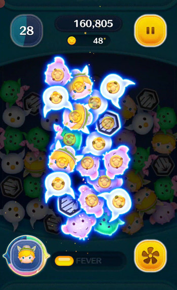 ゲージがたまると、スキル効果終了後に十字状にツムを消す消去系が出ます。
