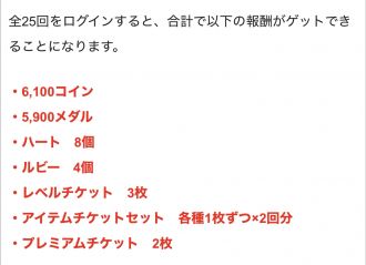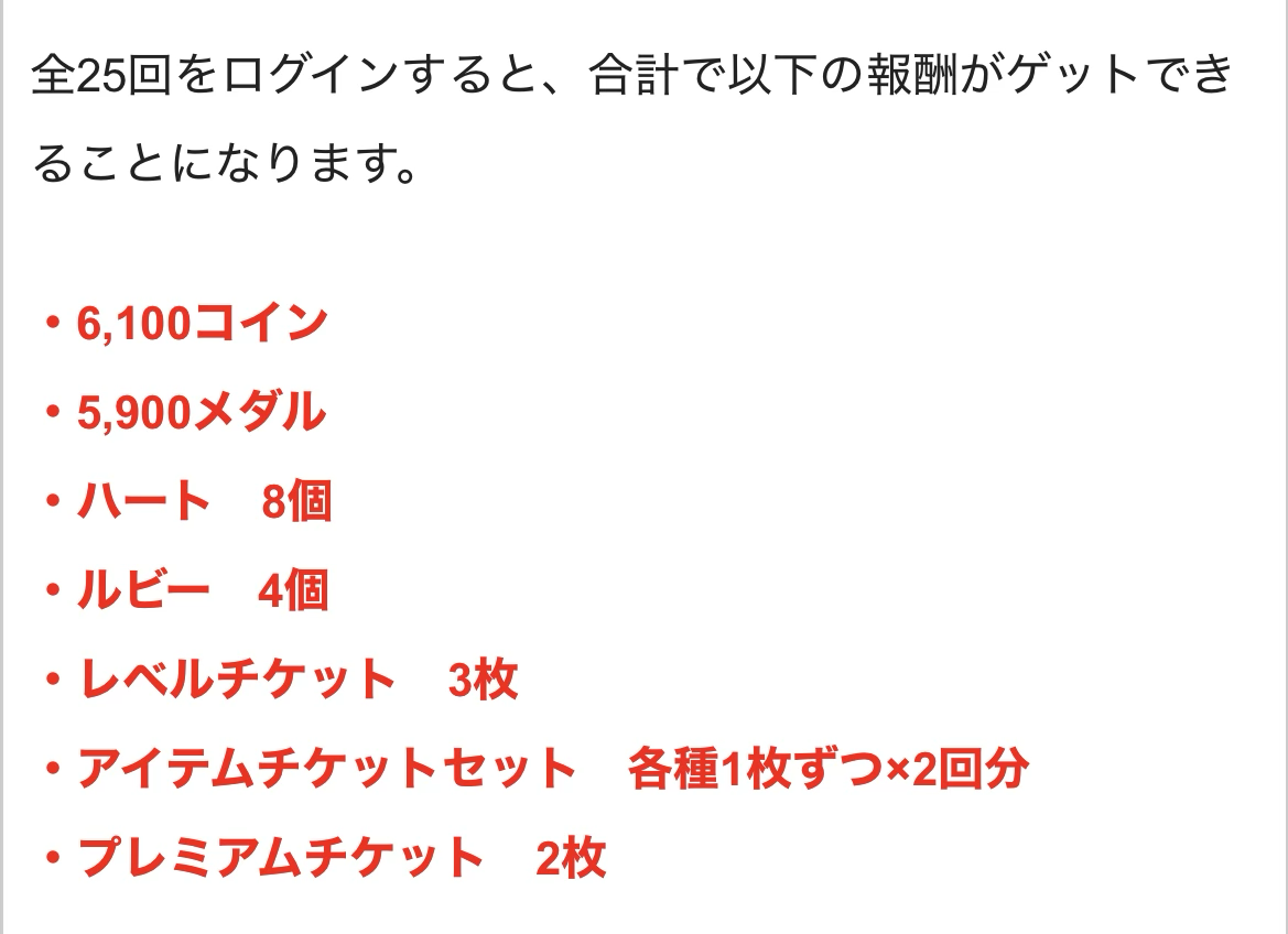 25回ログインすれば、すべての報酬がもらえるということですね。