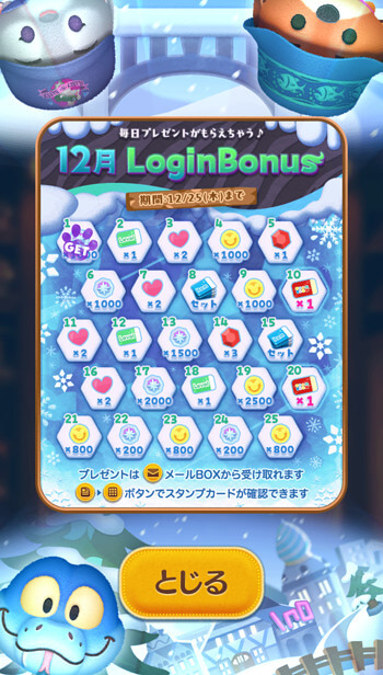 ツムツム 2025年12月ログインボーナス!プレミアムチケットなど全25回