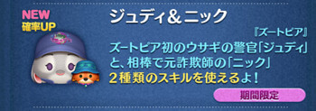 今回はジュディ&ニックは期間限定、ゲイリーは常駐ツムとなります。