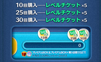 プレミアムBOXの購入回数に応じてもらえるレベルチケットの枚数