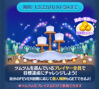 LINEディズニー ツムツム(Tsum Tsum)にて開催される、2025年12月ひろばイベント「みんなでキャンドルを灯そう~10億フィーバー~」の攻略完全まとめです。