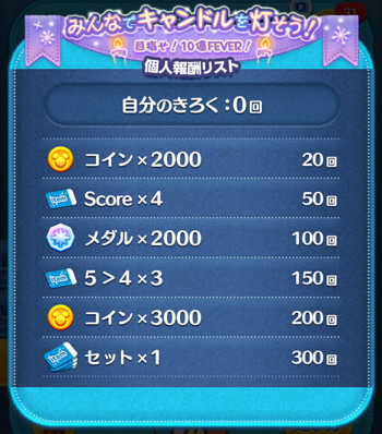 | 使用できるツム | 報酬 | |