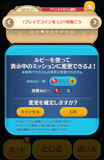 ただし、ミッション変更にはルビーを5個使いますので、ご注意ください。