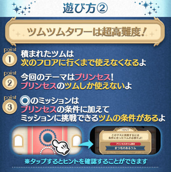 ツムツムタワー【プリンセス】の遊び方の基本・ルール・攻略法の情報です。