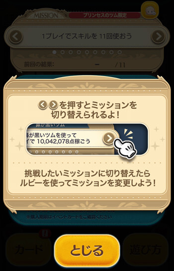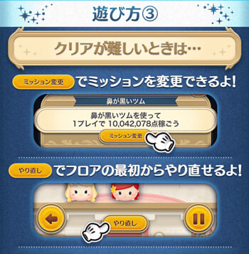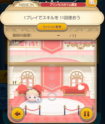 1つのフロアには4ミッション用意されており、次のフロアに行くまでは同じツムが使えません。