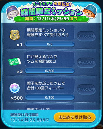 | 12/5 11:00~ | 期間限定ミッションの報酬をすべて受け取ろう |