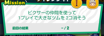 ピクサーの仲間を使って1プレイで大きなツムを2個消そう!のミッション概要