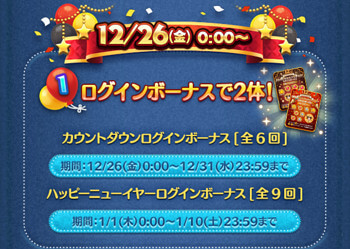・2026年カウントダウンログインボーナス5日目で1体→最短で12月30日0時