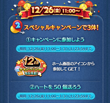 ・12周年アニバーサリーキャンペーンの参加で1体→最短で12月26日