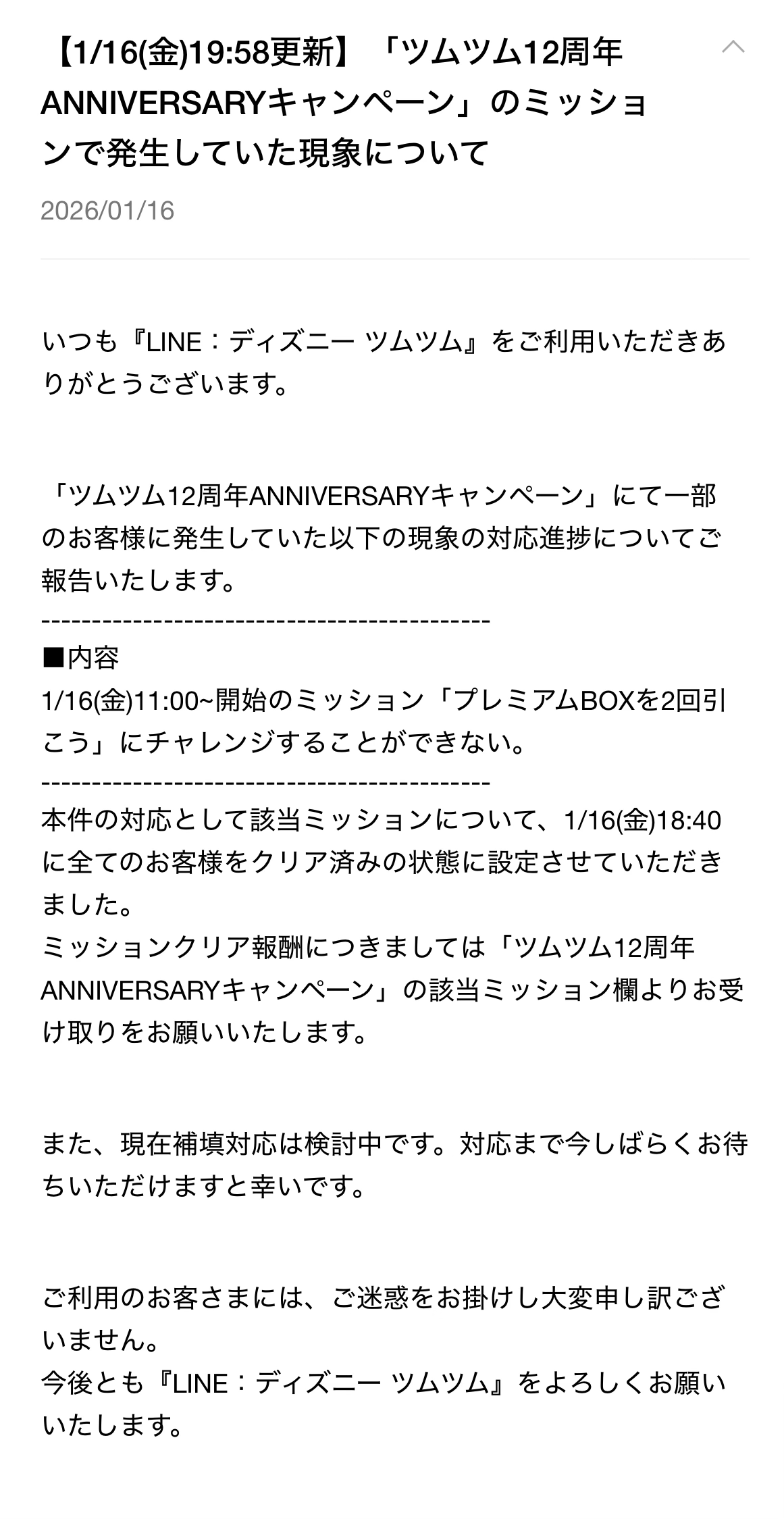 メールボックスからCM見てもギフトもらえない状況がずっと続いているので、マイミッションクリアできません。このミッション私には一番難しく、クリア不可のまま期限切れになりそう!