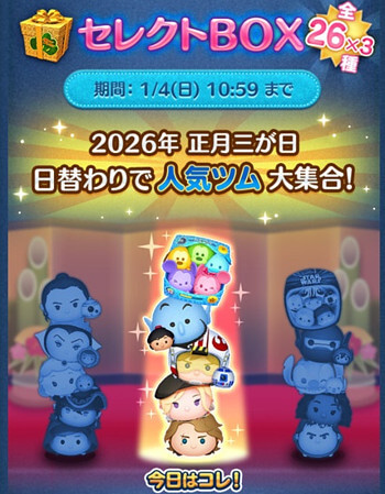 LINEディズニー ツムツム(Tsum Tsum)にて、2026年1月 正月三が日 日替わりセレクトBOX(セレクトボックス/セレクトガチャ)が開催されます!