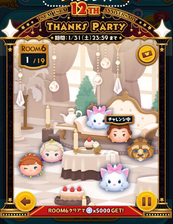 LINEディズニー ツムツム(Tsum Tsum)の2026年1月12周年記念イベント「サンクスパーティー(THANKS PARTY)」6枚目の完全攻略まとめです。