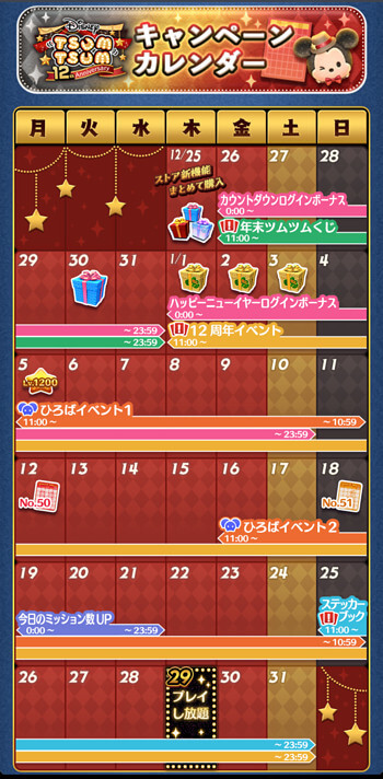 ツムツム内のイベントカレンダーで確認ができました。