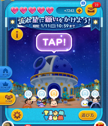 ひろばイベントの流れ星をタップすることで、嬉しい効果を得ることができます。