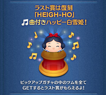 今回のピックアップガチャで注目となるのはラスト賞の曲付きハッピー白雪姫です。