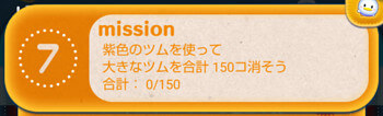 このミッションは、紫色のツムで大ツムを合計150個消すとクリアになります。