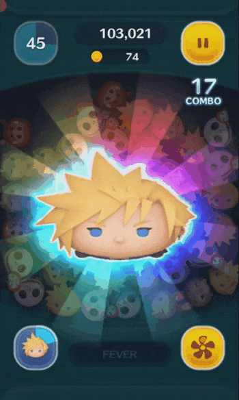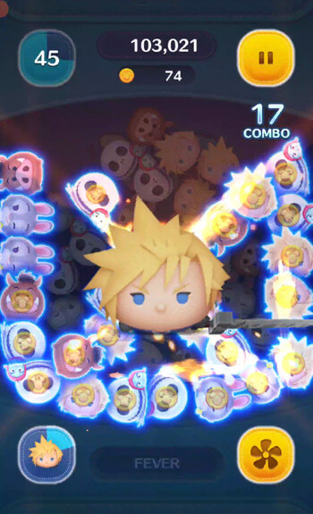 スキルを発動するとクラウドが凶斬りや超究武神覇斬でツムを消します。