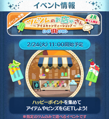 2026年2月の月末イベントは、ツムツムのお店やさん~アイスキャンディショップ~が開催されます。