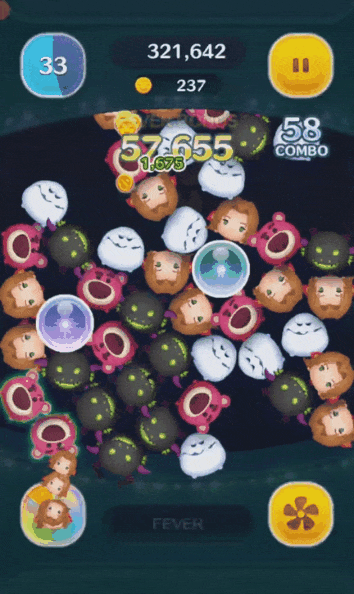 その後、周りのツムが周りを巻き込むタイプのツムへ変化します。