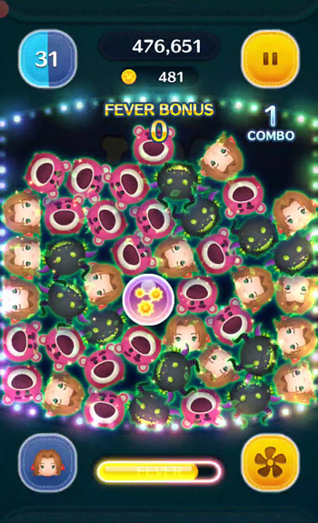 周りを巻き込むツムに変化しているツムは、緑色に光ります。