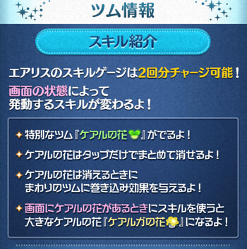 スキルゲージ2を発動する際に、画面上にケアルの花があるとケアルガの花へ変化します。