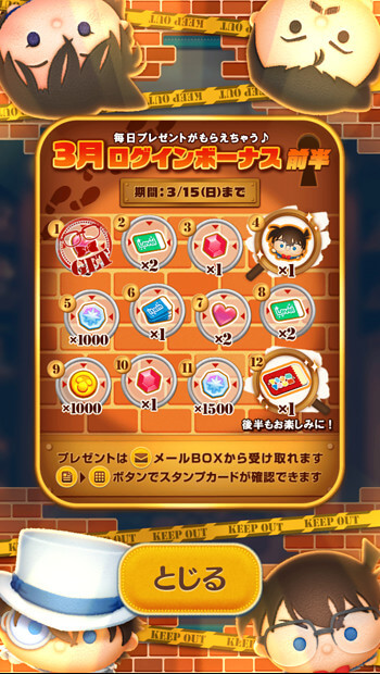 6日目に江戸川コナン+のツムが入っているので、必ず受け取っておきましょう!!