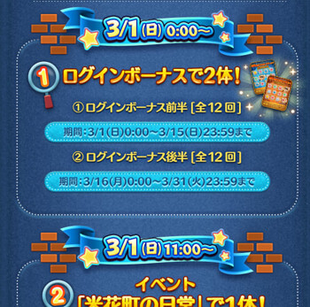 ・ログインボーナス後半で1体→3月16日以降