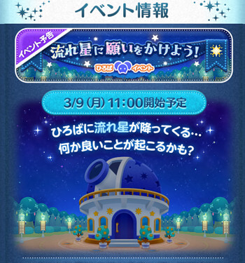 LINEディズニー ツムツム(Tsum Tsum)にて開催される、2026年3月ひろばイベント「流れ星に願いをかけよう」の攻略完全まとめです。