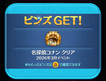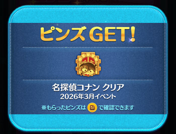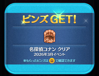 | クリア報酬 | 江戸川コナン+のツム 1体 ブロンズピンズ |