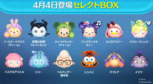 LINEディズニー ツムツム(Tsum Tsum)の、2026年4月セレクトBOX(セレクトボックス/セレクトガチャ)は、いろんなツム詰め合わせとなっています。