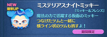 ミステリアスナイトミッキーは、つなげたツムと一緒につなげた最後のツムの横ラインのツムも消すよ!特殊系。