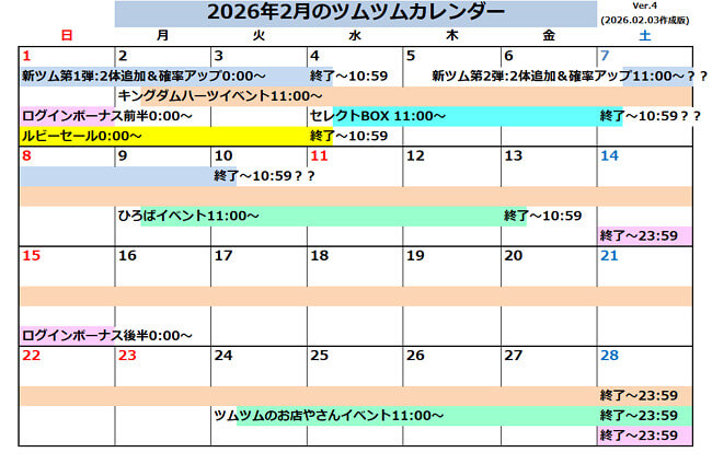 ツムツム 2026年2月のスケジュール&カレンダー【最新版】